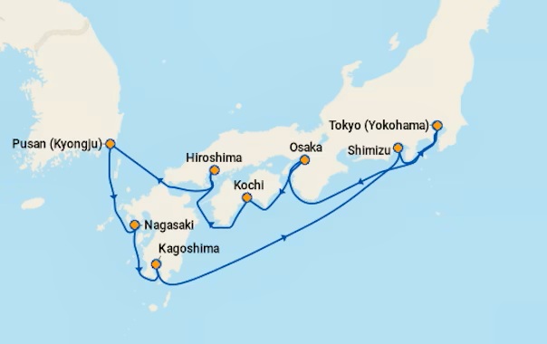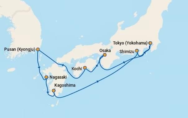 Ports with shared tour available: Kyoto, Japan (April 11, 2026) ; Osaka, Japan (April 12 2026); Kochi, Japan (April 13, 2026);Â Hiroshima, Japan (April 14, 2026); Nagasaki, Japan (April 17, 2026); Kagoshima, Japan (April 18, 2026); Shimizu, Japan (April 20, 2026)Duration: 8.5 - 9 hours