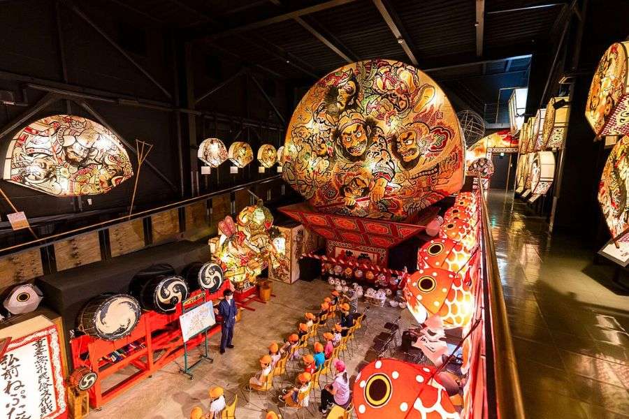 End your sightseeing at Tsugaru-han Neputa Village, a cultural complex dedicated to the Neputa Festival, one of Aomori’s most famous summer celebrations. Inside, view impressive illuminated Neputa floats featuring bold warrior scenes, legendary figures, and striking colors.