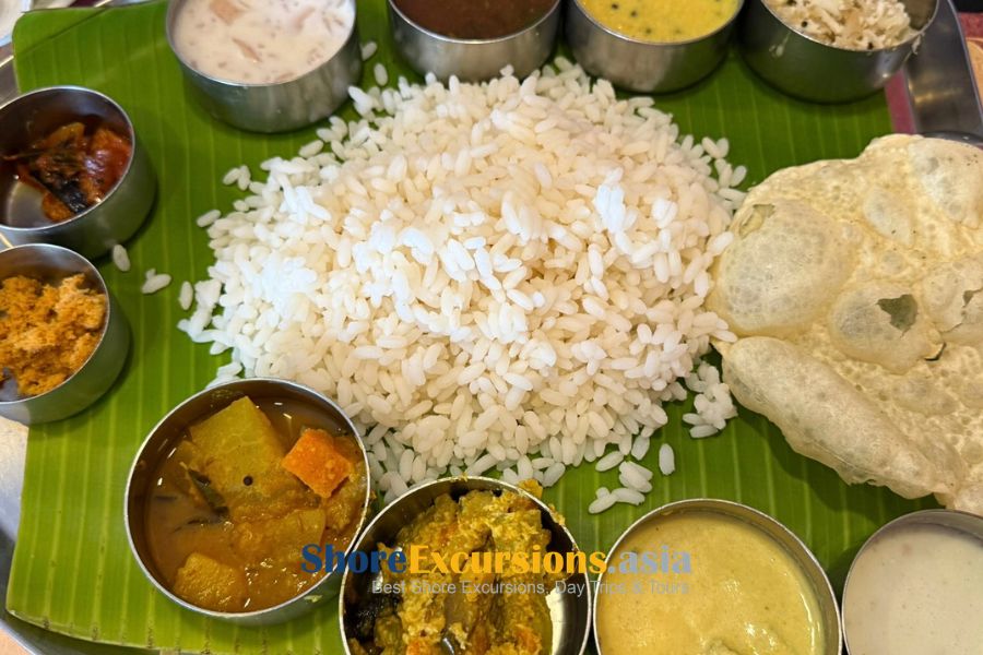 Kerala cuisine is known for strong spices, coconut flavors, and fresh seafood. Many Cochin shore excursions include time to try local dishes.
