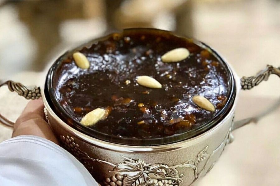 A rich, gelatinous dessert made with rosewater, nuts, and ghee, offering a sweet and aromatic finish to your meal.