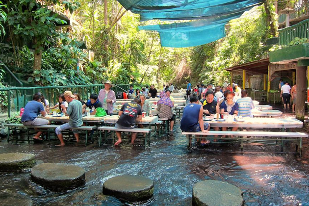 The most unique feature that makes Villa Escudero outstanding from many other resorts in Philippines must be the lunch by the water fall. Although this is a man-made waterfall but enjoying your meal by the water is still so exciting. All the heat in Philippines is wiped away immediately and here comes the pleasure during your lunch. A buffet lunch with local appetizers, local salads, local meat, local vegetables dishes is the best reflection of Filipino Cuisine. Enjoying Filipino Cuisine while your feet immerse in water surely is a unique and unforgettable experience for everyone. After finishing you lunch, they can lie down in the water fall and relax.