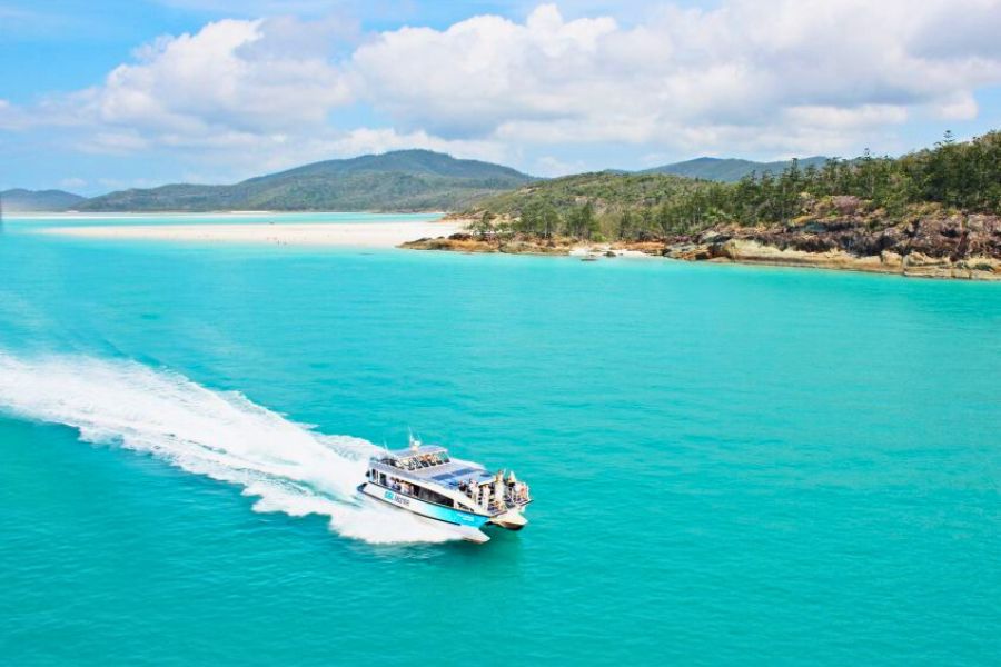 After enjoying time at Whitehaven Beach, return by boat to Airlie Beach and transfer back to the cruise port.