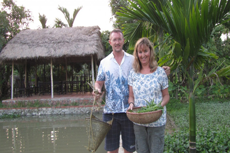 Continue to Yen Duc Cultural Village and stop at the historic Canh Huong Pagoda, an enduring symbol of the region’s heritage. Visit local houses, stroll along quiet lanes, and experience the gentle rhythm of rural life in Vietnam. Take part in hands-on cultural activities such as making a broom from dried grass and pounding rice using traditional stone mortars, offering a deeper connection to the daily life of local villagers. Savor a traditional Vietnamese lunch in the village, then enjoy a performance of Quan Ho folk songs, recognized by UNESCO as an intangible cultural heritage.